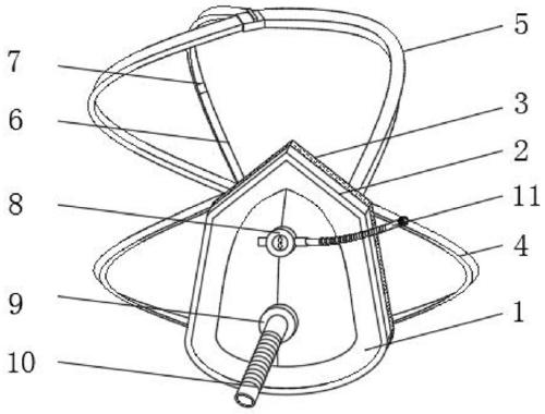 作为本实用新型再进一步的方案:所述面罩主体的前表面靠近下端位置处安装有回流罩,所述回流罩的前表面安装有回流管,且回流罩位于面罩主体的内部安装有奶嘴。