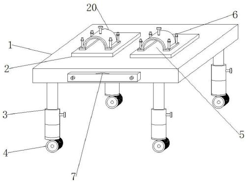 优选的,所述装置主体的内部底部两侧固定连接有伸缩柱固定块。