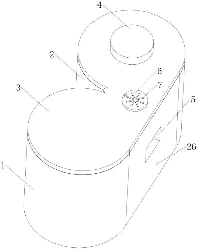 2、本实用新型在插接槽的底部设有储液室,这种方式使得可以将消毒液储存在储液室的内部,大大降低了消毒液与空气接触的机会,使得消毒液储存的时间更长,同时更加的卫生,且防止棉签的底端长时间泡在消毒液里造成棉签底端变形;