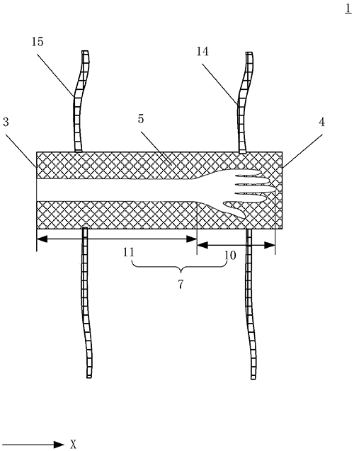 技术功效: [0014]本申请通过分别设置上肢摆放枕和下肢摆放枕,能够对上肢和下肢的良肢位进行合理摆放; [0015]本申请上肢摆放枕截面为梯形,上肢摆放枕包括沿第一方向相对设置的第一端和第二端,第一端的高度小于第二端的高度,上肢摆放枕包括沿第二方向相对设置的第一面和第二面,第一方向和第二方向交叉,第一面设有第一凹槽,第一凹槽从第一端向第二端延伸,第一凹槽与上肢相匹配,第二面设有第二凹槽,第二凹槽由第二端向第一端延伸,这样当处于仰卧位时,将上肢放在第一凹槽内,当处于健侧卧位时,将上肢放在第二凹槽内,达到一个上肢摆放枕适合两种良肢位的目的; [0016]本申请的下肢摆放枕设有第三凹槽,与下肢配合,适合仰卧位; [0017]本申请在上肢摆放枕靠近第一部的位置设有第一束缚带,靠近所述第三部的位置设有第二束缚带,可以对手部进行约束,以防止手部痉挛的发生; [0018]本申请中上肢摆放枕和下肢摆放枕的材料均为记忆海绵,记忆海绵手感柔软,能够缓慢回弹,患者不会感觉不适。 [0019]当然,实施本实用新型的任一产品必不特定需要同时达到以上所述的所有技术效果。 [0020]通过以下参照附图对本实用新型的示例性实施例的详细描述,本实用新型的其它特征及其优点将会变得清楚。