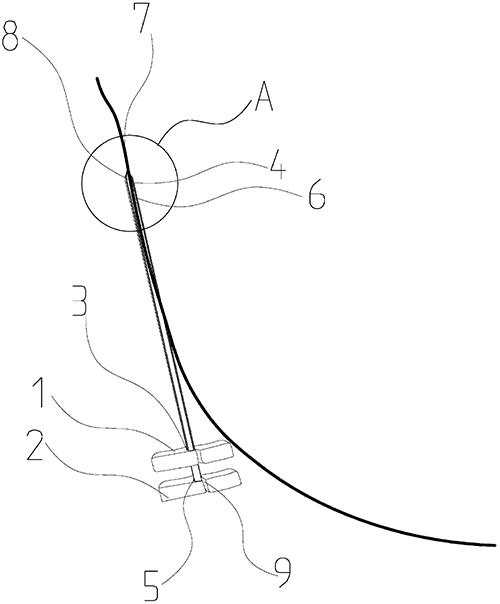 摘要: 本实用新型提供了一种穿刺针,该穿刺针包括第一基座和第二基座,第一基座上垂直设有第一通孔和与第一通孔连通的第一针头,第二基座上垂直设有第二通孔和与第二通孔连通且穿过第一通孔伸入第一针头内的第二针头,第一针头和第二针头的圆周侧壁上均开设有供软体材料通过的开口,两个开口的顶端和底端分别与第一针头4或第二针头的顶端和底端位于同一水平面,第一基座和第二基座上均开设有位于开口长度方向的延长线上的缺口;本实用新型提供的穿刺针能够拆卸,在将软体材料导入人体后,可以实现将穿刺针从软体材料上取下。