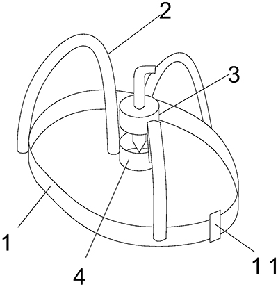 技术功效: [0008]本实用新型的有益效果为: [0009]本实用新型提供的神经外科手术引流器,用卡扣将固定条两端进行连接,使固定条围成环状,围成环状的固定条套在患者头部,然后通过支撑架将套设有引流组件的固定环固定连接,使引流器能够稳定地进行引流。 [0010]本实用新型的其它特征和优点将在随后的说明书中阐述,并且,部分地从说明书中变得显而易见,或者通过实施本实用新型而了解。本实用新型的目的和其他优点可通过在所写的说明书、权利要求书、以及附图中所特别指出的结构来实现和获得。