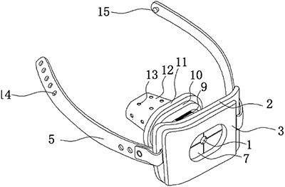 技术功效: [0013]本实用新型提供了一种消化内科胃镜检查用咬口器,具备以下有益效果: [0014]1、该消化内科胃镜检查用咬口器,通过设置吸水层、压舌圈和呼吸孔,当被检查人员咬住该咬口器时,压舌圈可以防止在做检查时人员的舌头下意识的触碰到检查仪器,避免了不必要的麻烦,呼吸孔也可以让人正常的呼吸,吸水层可以吸收被检查人员无意识所流出的口水,为检查工作提供了方便。 [0015]2、该消化内科胃镜检查用咬口器,通过设置弹簧、固定板和固牙槽,固牙槽可以稳定咬口器的位置,不会让其来回活动而影响到检查,弹簧和固定板则可以在检查时固定胃镜的位置,让胃镜检查变得更加精确。