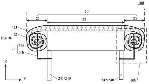 技术功效: [0020]本实用新型提供的便于转运的临床用床垫,包括转动组件和柔性床垫,至少部分柔性床垫围绕在转动组件上,沿第二方向上,转动组件包括相对设置的第一转动组件和第二转动组件,床腿包括相对设置的第一床腿和第二床腿,第一转动组件与第一床腿可拆卸连接,第二转动组件与第二床腿可拆卸连接。进而当患者需要转移时,在该床体一侧设置另一个预置床体,将第二转动组件与第二床腿拆分,转动第二转动组件上的L型把手,将第二转动组件上围绕的柔性床垫伸出平铺在预置床体上,并将其与预置床体远离床体一侧的床腿连接,此时转动第二转动组件上的L型把手,柔性衬垫随着第二转动组件的转动围绕在第二转动组件上,同时拉动第一转动组件上围绕的部分柔性床垫伸出,此时患者根据柔性床垫的传动可以平移至预置床体上,该过程中无需多人同时工作,也不需搬动患者,有效解决搬动病人时不小心给病人造成的二次伤害的问题。