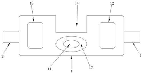 技术功效: [0016]本实用新型的有益效果为:俯卧位护脸贴包括贴本体和固定结构,贴本体能够与面部形状相互贴合,因此可将贴本体的中部贴合在面部口鼻处,并且在贴本体的中部开设有开口,开口的尺寸大于气管插管的尺寸,从而确保气管插管能够顺利的从开口处引出,贴本体的两端能够从面部向耳部持续贴合覆盖,并分别经过对应的耳部后贴合在后脖处,同时确定好位置的贴本体的两端能够通过固定结构可拆卸连接在一起,从而对贴本体的两端进行有效固定,使贴本体与面部的整体连接配合更加牢固,贴本体具有一定的厚度,并且具有弹性,拥有良好的抗压能力,能够对俯卧位患者给予面部及耳部的全方位保护,避免压伤,提升患者的使用体验。