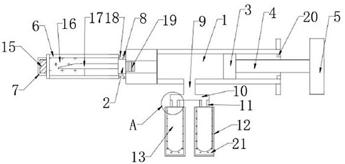 技术功效: [0013]1、通过在采血管的下方设置有导流管,导流管的下方设置有连接管,连接管底部的两端均设置有分支管,分支管的下方均设置有储液管,便于当患者需要采集大量的血液时,医务人员利用采血针,拉动推板和活塞将血液导入采血管后,血液顺着导流管和连接管分别通过分支管流入储液管内,医务人员可从观察窗观察储液管内部采集的血液量,使得一次静脉采血能够获得足够的血液,避免多次穿刺患者造成患者不适的问题,同时分支管和储液管之间设置第二螺纹槽,便于采集完成后,转动储液管取下进行密封,提高了采血的效率,避免血液在采血管内再次转移的过程中出现血液交叉感染的问题,提高了采血的便捷性,同时储液管的外侧设置有制冷壳,制冷壳的内壁设置有冷凝水,便于对储液管内的血液冷藏处理,使得血液在采集后的几个小时内处于低温的环境,便于对血液的储存。 [0014]2、通过在针盖的前端设置有密封盖,密封盖的内部设置有第一消毒棉,便于对患者进行采血前打开密封盖,利用第一消毒棉擦拭进行消毒,从而实现快速消毒的目的,避免医务人员需要拿出棉签和消毒液等繁琐的操作,整体效率得到提高,通过在针盖一端的上下均设置有卡块,连接板的上下均设置有卡槽,便于当采血完成后,直接将针盖与连接板连接固定,避免针头外露,导致医务人员或者处理人员被针头刺伤的问题,同时针盖的内部设置有第二消毒棉,便于对使用后的采血针立刻消毒,杀灭传染病菌,避免采血针暴露在空气中造成污染,从根本解决传染源,通过连接板和采血管之间设置第一螺纹槽,便于转动针盖和连接板,从而可以根据使用的需要更换不同粗细的采血针,使用更加方便。