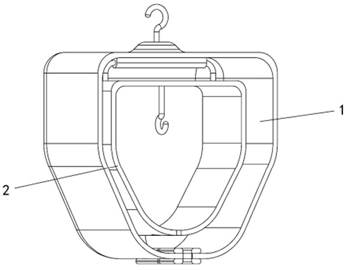 技术功效: [0010]本实用新型通过带有振动马达的设计,实现了在垂直方向上完成对输液袋的震荡,同时通过挂钩的设计增加了使用场景,使产品可以轻松放置于输液架上,降低使用难度,方便医护人员与患者使用,同时降低医疗成本。