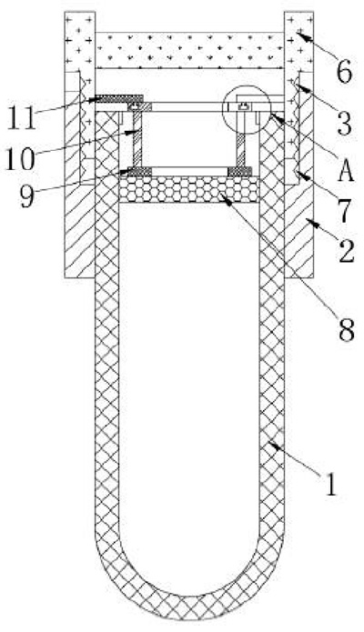 技术功效: [0014]1、通过活动套、固定套和第二胶塞,旋转活动套,在第二外螺纹和第一外螺纹的连接作用下,带动活动套及其内侧的连接板进行旋转,在滑块和滑槽的连接作用下,使连接板下方的滑块沿第二环形板内部的滑槽进行滑动,同时带动第二环形板进行抬升,进而带动支撑架及其下方的第一环形板进行抬升,实现了第二胶塞沿管体内壁抬升,使管体内部的负压增大,提高管内的真空度,解决了采血管处于静置未使用过程中,管内真空度会逐渐降低,进而影响到血液采血量的问题。 [0015]2、通过限位块,第二胶塞沿管体内壁抬升过程中与限位块接触,起到了限位的作用,防止第二胶塞从管体内部脱落后,造成管体内部失压的情况发生,提高了实用性。