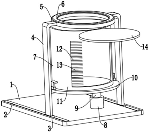 技术功效: [0009]采用上述结构本实用新型取得的有益效果如下:本方案一种肿瘤科多功能尿壶,有效的解决了目前肿瘤科患者在使用尿壶时不便进行观察尿液状态以及不便进行清洗消毒的问题,实现了肿瘤科患者在使用尿壶时方便进行观察尿液状态以及方便进行清洗消毒的目的,是一种非常实用的肿瘤科多功能尿壶。