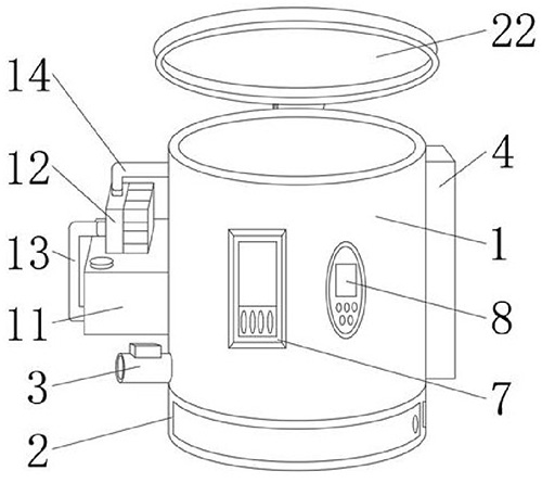 摘要: 本实用新型涉及医疗器械技术领域,具体是一种自动化消毒桶,所述桶体的底部固定连接有底壳,且底壳中设有搅拌机构,所述搅拌机构的一端贯穿延伸至桶体中,所述桶体的一侧连通设有用于消毒液的供液机构,所述桶体的一侧底部连通设有排液阀口,所述桶体远离消毒液加液机构的一侧连通设有安装槽盒,且安装槽盒中分别固定连接有液位传感器和用于消毒液浓度监测的浓度检测器。本实用新型中,通过设置供液机构和搅拌机构实现对消毒液的自动供液以及搅拌功能,混合更充分,节省人力,消毒液配比效果好,且本装置可对消毒液的液体液位高度、配比浓度以及浸泡时间进行监测,使用更方便,功能性更强。
