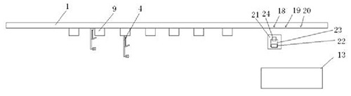 技术功效: [0014]本发明具有的优点和积极效果是:本发明提供了一种自动化输液及回收装置,输液药品统一在配药室准备好,输液挂钩通过传送轨道运输到患者所在卡槽机构处,输液治疗结束后输液挂钩将输液装置输送到回收机构处完成医疗垃圾分类回收;本发明自动化程度高,能够有效节省人力;患者直接去排到的输液座位等待护士去进行输液操作,有利于控制患者具体输液座位避免交叉感染。