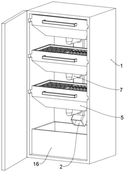 技术功效: [0015]本实用实用新型在使用时能便于对不可挂接以及可挂接的医疗器械进行平放以及挂放进行分开沥水工作,从而提高沥水效果,同时在沥水的同时能便于对沥下的水进行引导并集中收集,使沥水更方便,防止造成污染。