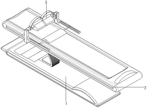 技术功效语段: [0014]1、通过放疗床、支撑杆、放置板、横杆和弹力带实现,弹力带配合固定卡扣和软垫对手臂进行固定,提高舒适性,放置板配合缓冲槽和缓冲弹簧缓冲手臂,横杆配合头枕提高舒适性,提高放疗床的舒适性,缓解患者的不适,便于进行放疗,便于固定手臂; [0015]2、通过滑动块、双向推杆、移动块和紧固旋钮实现,启动或关闭双向推杆配合摩擦片对移动的支撑杆进行锁止,转动紧固旋钮,紧固旋钮配合紧固螺丝离开移动杆外壁即可对横杆进行移动,调节头枕的位置和根据患者进行调节,便于调节,适用于不同患者。