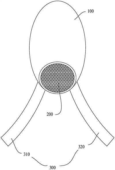 技术功效语段: [0019]本申请提供的医用防护帽,包括帽体及设于帽体的收纳结构,帽体设有用于佩戴者佩戴的佩戴空间,收纳结构设有用于收纳头发的收纳空间;其中,收纳结构具有口径可以扩大或者缩小的收纳口,收纳空间通过收纳口与佩戴空间相连通;医用防护帽还包括松紧调节结构,松紧调节结构用于调整收纳口的口径大小。这样设置后,长头发医护人员佩戴上本申请提供的医用防护帽后,头发能够通过收纳口收纳于收纳空间,如此,能够解决长头发医护人员的头发包裹不到位的问题;并且,松紧调节结构能够调节收纳口的口径大小,能够对头发起到固定的作用,避免头发收纳于收纳空间后发生松散的情况。 [0020]应当理解的是,以上的一般描述和后文的细节描述仅是示例性和解释性的,并不能限制本申请。