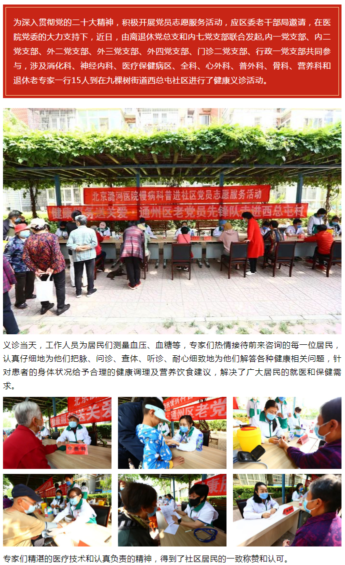 轻轨:八通线通州北苑站、九棵树站下车乘坐公交车潞河医院站下车即到