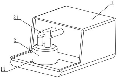技术功效语段: [0019]加热板可转动的设计,能够改变了原有的自动加湿水盒的安装步骤,不需要像传统的那样,将自动加湿水盒朝着连接头处推动,只需要将自动加湿水盒放置在加热板上,由于加热板先是倾斜状,这样自动加湿水盒也同样保持倾斜状,因此可以控制倾斜角度,使转换接头的连接端与连接头处临近但不接触,然后通过将加热板由倾斜状转为水平状的过程中,转换接头的连接端由于旋转,从而转换接头的连接端自动与连接头卡合固定,通过旋转的方式,既实现了自动加湿水盒的安装,同时也实现了转换接头与连接头的自动连接固定,更加的方便快捷,更加的省力。