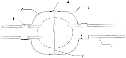技术功效语段: [0012]本实用新型能够将克氏针导向固定,大小可调节适应不同大小的髌骨,导向套筒可以张开,适应多种粗细的克氏针,且操作简单,方便在手术中使用增加工作效率,减轻多次植入克氏针对病人来带的痛苦。