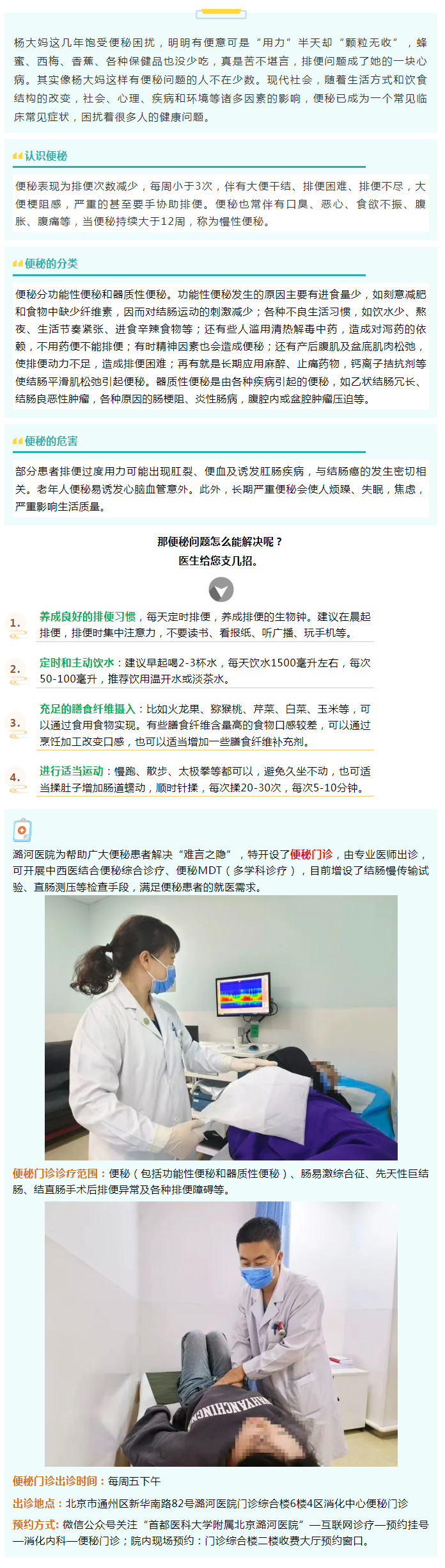 轻轨:八通线通州北苑站、九棵树站下车乘坐公交车潞河医院站下车即到