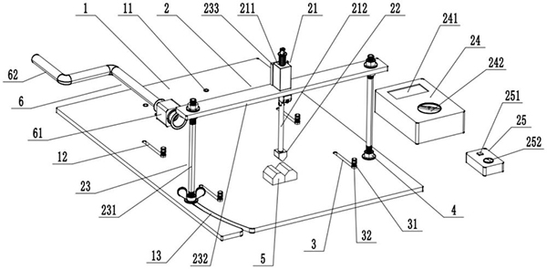 技术功效语段: [0023]1.本实用新型中,通过调节肢体固定螺母将小型动物的体位固定后进行调节麻醉面罩,然后将所需骨折的肢体置于铁砧上。再通过启动十字打线器,根据打到小型动物皮肤上的红外射线,再次调节肢体的位置,使红外十字线正好打在长骨骨干中段,且铁砧与长骨骨干垂直,再次固定肢体,接着启动推拉式电磁铁,使得推杆通过推拉式电磁铁的电磁弹射力往下弹射,推杆下端的顿骨刀撞击在铁砧上的肢体,进而对小型动物长骨干闭合骨造成骨折损伤。操作简单、部件易于获得、造价成本低,单人即可完成造模。 [0024]2.本实用新型中体位固定的方式结合红外射线辅助定位,使得横形骨折成功率大幅提高;通过使用电磁弹射动力原理,一次精准打击,减少不确定因素,减少粉碎型、长斜型骨折发生率,并且弹射可控,实现打击动物肢体的力度控制。 [0025]3.本使用新型中的击打装置中的钝骨刀,以及与钝骨刀配合的使用的铁砧均可拆卸,铁砧可根据动物的体型适应性的选择凹槽宽度不同的铁砧,并相应的更换钝骨刀,配合固定组件可以固定不同体型的动物,以及固定动物成不同体位,便于进行动物长骨干闭合骨折造模。进而本实用新型可以对不同体型的动物长骨干闭合骨折造模。因此,本发明具有应用范围较广的特点,解决了现有击打装置仅能对相同体型的动物进行骨折造模实验,击打装置使用范围单一的缺陷。
