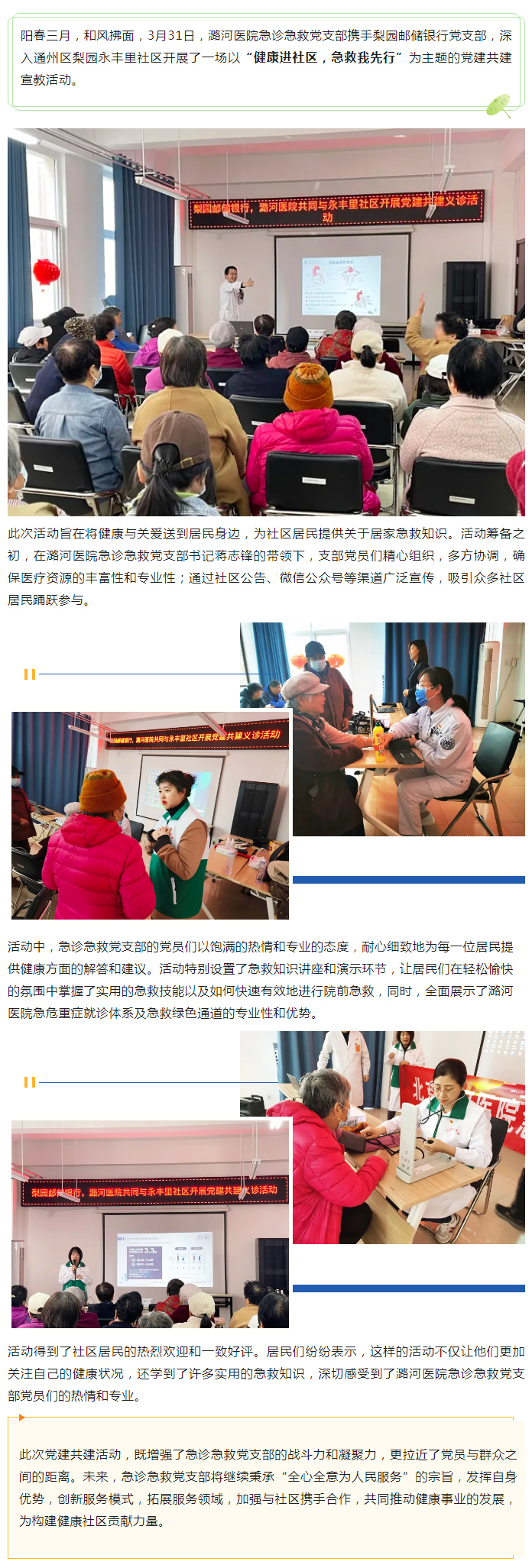 轻轨:八通线通州北苑站、九棵树站下车乘坐公交车潞河医院站下车即到