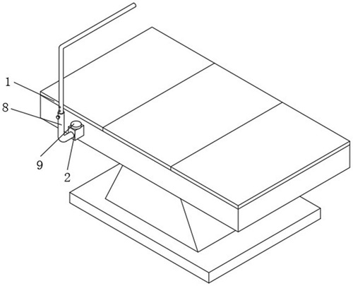摘要: 本实用新型公开了一种可固定调节的手术头架,包括手术床、固定块,所述手术床的一侧开设有插接槽,所述插接槽的内壁对称设置有弹簧,所述弹簧的一侧固定连接有固定凸块,所述固定块的一侧固定连接有卡接块,所述卡接块的两侧均开设有卡接槽,所述卡接块的内部卡接有手术头架本体,所述手术头架本体包括旋转柱,所述旋转柱的内部套设有调节柱,所述旋转柱的一侧螺纹连接有第二固定螺栓,所述调节柱的一侧开设有若干个螺纹孔,所述固定块的上端螺纹连接有第一固定螺栓。通过设置固定块、第一固定螺栓,拧松第一固定螺栓,即可将手术头架本体进行旋转,在使用时,可旋转至手术床上方,在不使用时,可旋转至手术床下方进行放置,无需反复安装拆卸。
