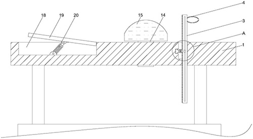 技术功效语段: [0014]1、该肛肠科患者检查床,通过支撑板分别与床板内移动式第一凸形块和支撑架内升降式第二凸形块的连接,使双向丝杆带动第一凸形块移动的同时,两组支撑架也随之位移,配合固定带对腿部的间距进行调节,由于方形轴贯穿两组支撑板内的转轴,因此,两组转轴外侧的齿轮保持一致,随着方形轴的旋转进行转动,且不会影响其位移,在齿轮与支撑架一侧多个齿牙啮合的作用下,带动两组支撑架同时升降,便于患者腿部的高度,满足不同体型的患者和不同检查姿势的要求。[0015]2、该肛肠科患者检查床,通过床板上包裹的绑带,可以调节气囊的位置,配合气泵,使填充后的气囊可以对患者的腹部或者背部进行支撑,辅助患者的检查姿势,有利于减轻患者的负担,使其更好的进行检查,且绑带通过魔术贴进行固定,可以根据需求进行拆卸。