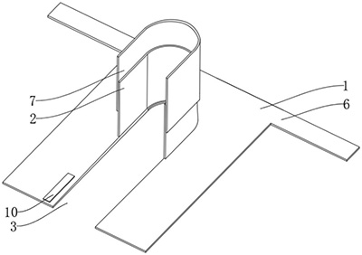技术功效语段: [0020]1.在本实用新型的实际操作中,人员可利用两个绑带将腹部平面带固定于儿童的腰部形成固定,且同时将粘贴层粘贴于儿童的腹部,辅助固定,防止腹部平面带掉落,减少器官的压迫。[0021]2.为扩大麻醉面积,可将第一粘贴带和第二粘贴带相互粘合,形成瓣状构成阴囊容纳腔,其内壁涂覆有麻醉药膏,对儿童的阴囊进行保护和兜罩,同时U型突出端在粘合过程中,形成锥形口,可以对儿童的阴茎进行包裹。需要说明的是,锥形口的内部和包裹阴囊的腹部内壁平面带处均涂有麻醉药膏,也可以有效对儿童私密处进行保护上药,且使用成本较低,还能对包皮手术之后的阴部进行保护。[0022]需要说明的,本发明实施例的腹部平面带使用前需要被0.5%利多卡因溶液20ML浸泡麻醉5-10分钟。套筒及阴囊容纳腔所对应的表面涂敷的麻醉药膏优选复方利多卡因乳膏,一岁以上儿童,每十平方厘米涂覆量为1.5-2克,涂药时间至少1小时,最长5小时。用于大面积手术时,涂药时间至少2小时,最长5小时,使用时间延长会使麻醉效果会降低。[0023]3.另外儿童也可以通过锥形口(套筒前端的敞口)进行排尿,另外增加的一层延长带,可以粘贴在U型突出端的外侧,粘贴方式为魔术贴或者胶水粘合均可,U型突出端在卷绕成锥形口时,会带着延长带进行卷绕,用于延长锥形口的长度,方便适应不同儿童的阴茎长度。